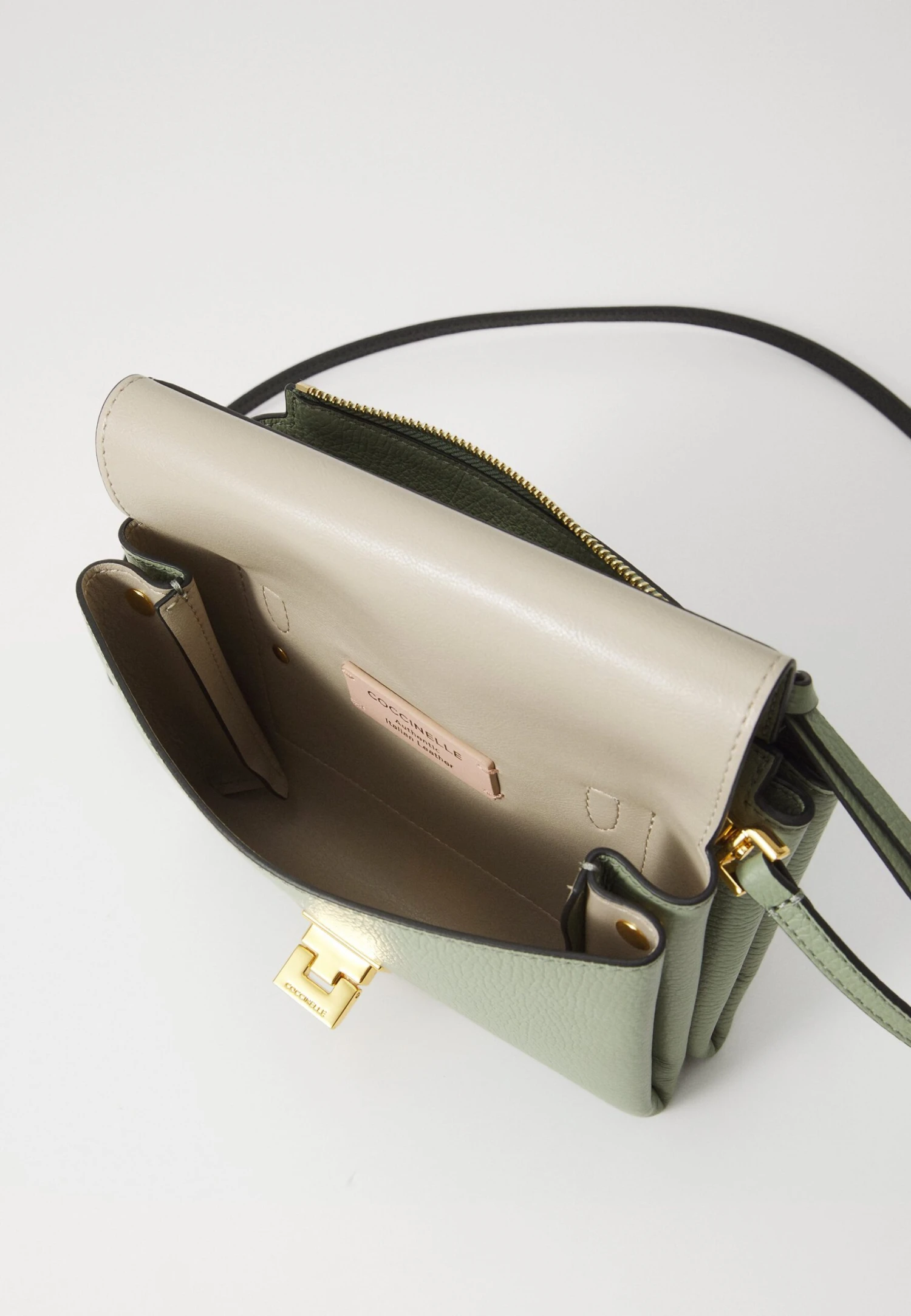 - Compartments: Main compartment, slip compartment, zip compartment