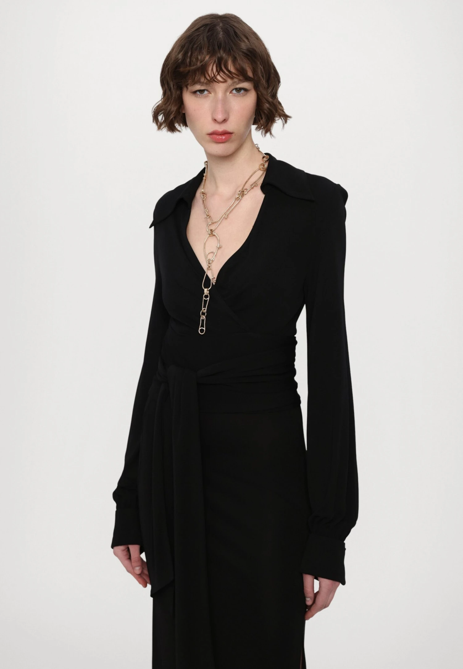 - Neckline: Cache-coeur