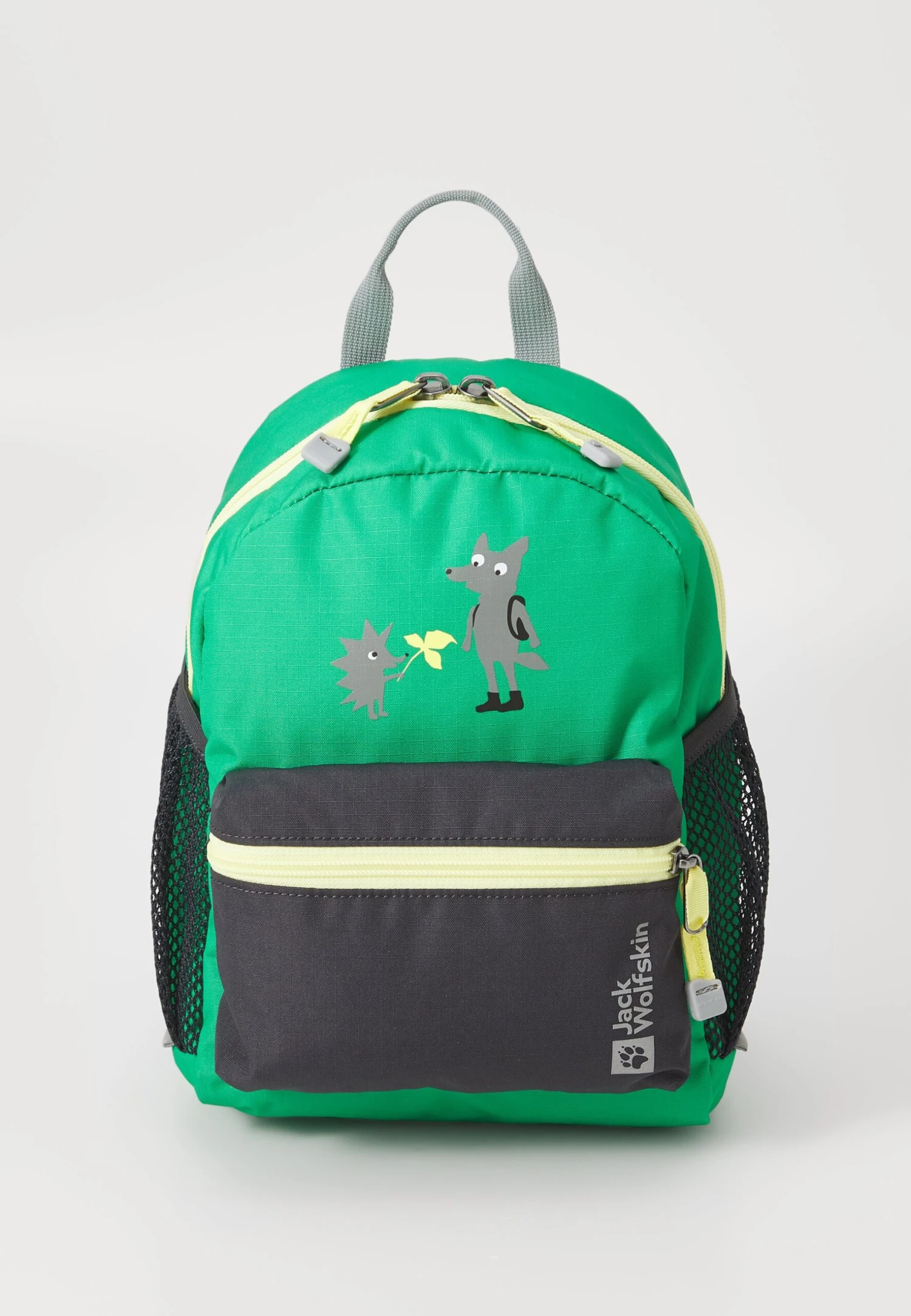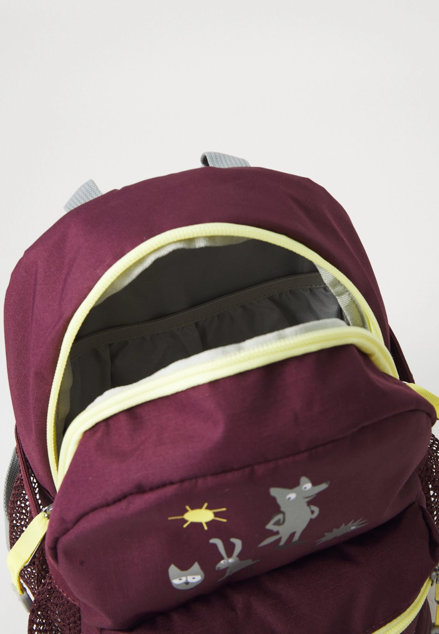 - Compartments: Front pocket, main compartment, mesh side pockets