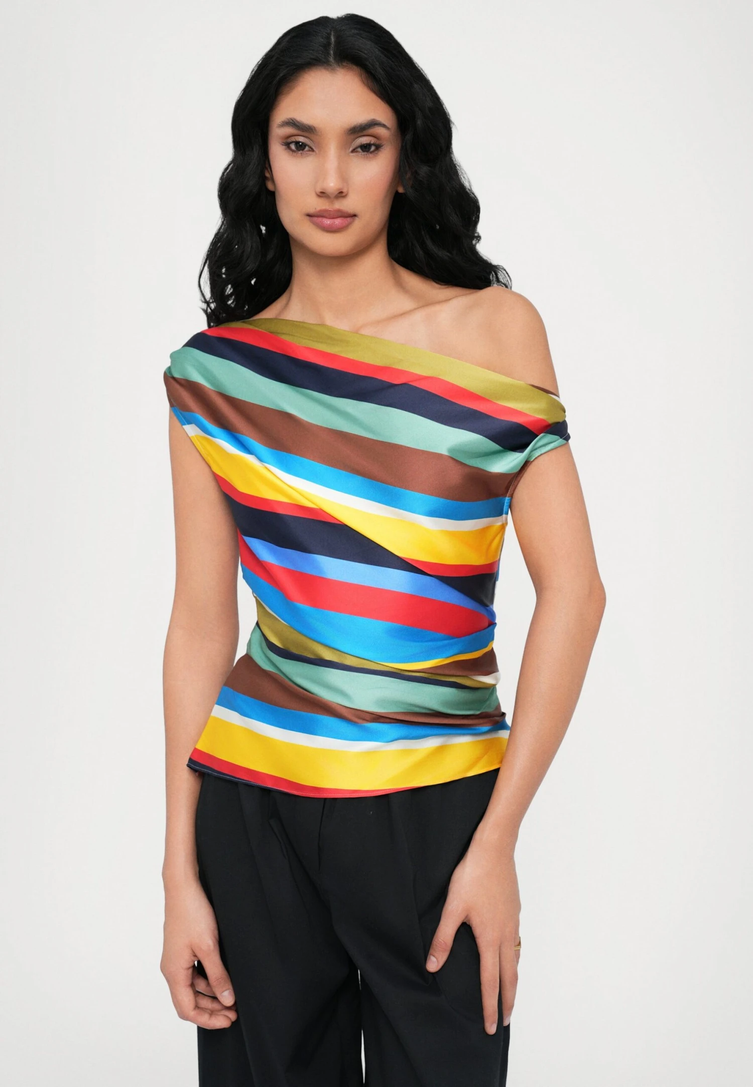 - Neckline: Off-the-shoulder